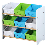A játékok unalmas tárolása szórakoztató is lehet, és a játékok mindig megtalálják helyüket a gyerekszobában. A játéktároló ideális játékok tárolásához, 9 szövet dobozt tartalmaz három különböző színben. Úgy tervezték, hogy a gyerekek saját maguk is könnyedén elrakhatják a játékaikat. Minden doboz praktikus fogantyúval van felszerelve, amely megkönn..